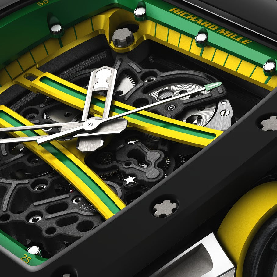 The Richard Mille RM 61-01 Yohan Blake is a high-performance luxury timepiece designed for precision and durability. Engineered with advanced materials and exceptional craftsmanship, this watch offers outstanding shock resistance and a lightweight feel ideal for athletes. Its skeletonized dial reveals the intricate mechanical movement, demonstrating technical excellence and innovative design. Perfect for those who demand both cutting-edge functionality and distinctive style, the RM 61-01 is a testament to Richard Milleβs commitment to pushing horological boundaries.