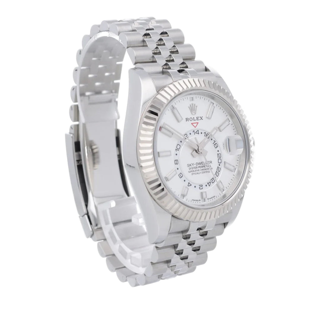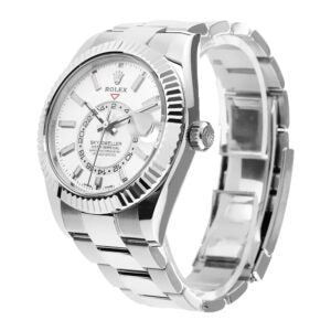 The Rolex Sky-Dweller Watch is a versatile and elegant choice for both men and women. With its sleek white 41m design, this timepiece adds a touch of sophistication to any outfit. With the reliable precision of a Rolex and the stylish design of the Sky-Dweller collection, this watch is perfect for any occasion.