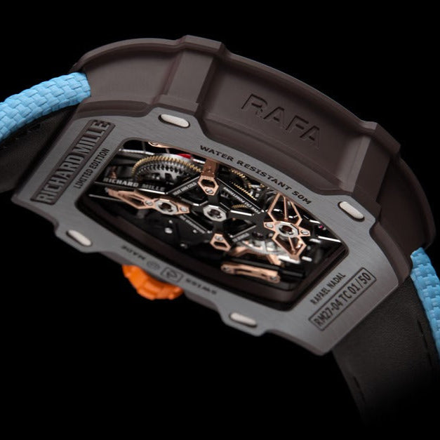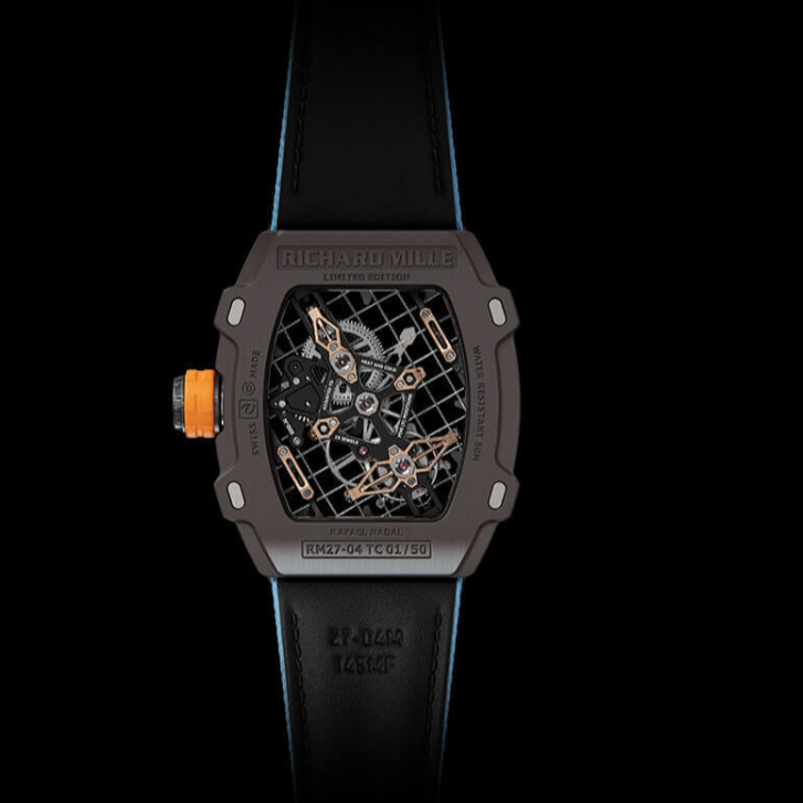 The Richard Mille RM 27-04 Rafael Nadal Tourbillon Manual Winding watch is an engineering masterpiece designed for precision and resilience. Featuring a manual-winding tourbillon movement, this model combines advanced materials and innovative suspension technology to withstand extreme shocks, making it ideal for high-performance wear. Its lightweight construction ensures comfort during intense activity, while the meticulous craftsmanship highlights Richard Mille’s commitment to cutting-edge horology. This timepiece merges technical excellence with sporty elegance, perfectly suited for collectors and enthusiasts who appreciate both durability and refined mechanical artistry.